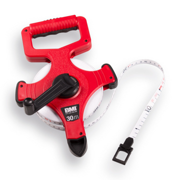 Das BMI Rahmenbandmaß, auch bekannt als Vermesser, ist eine hochwertige Messlösung mit einem Maßband von 30, 50 oder 100 Metern. Dieses Maßband hat eine Bandbreite von 13 mm und verfügt über eine cm/cm-Verteilung, die eine genaue Messung erleichtert. Außerdem ist es mit einem Markierungspunkt ausgestattet. Der Kunststoffring am Anfang des Bandmaßes bietet zusätzlichen Komfort bei der Sicherung des Bandes.